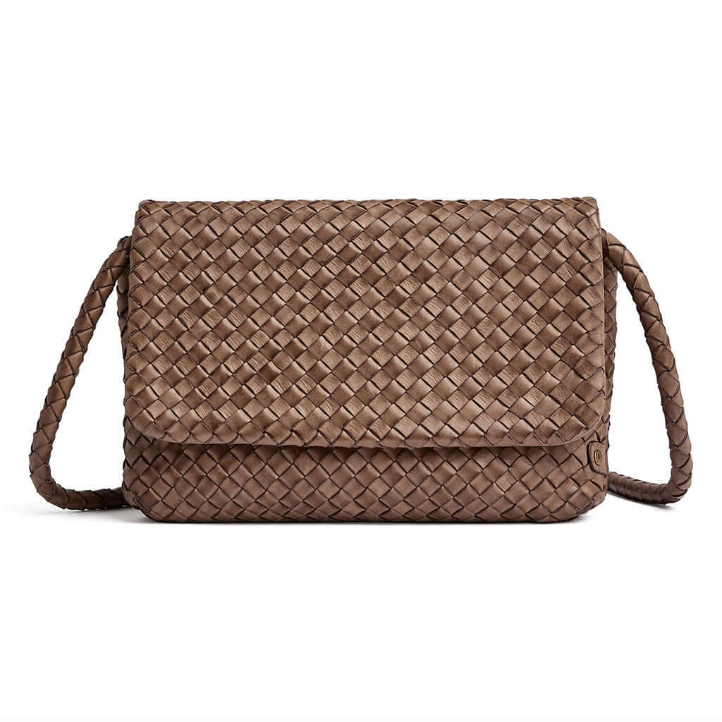 Denne crossover/clutch er indbegrebet af smukt håndværk og alsidigt design. Tasken er håndflettet i et elegant og tidløst mønster, der giver den et eksklusivt og sofistikeret udtryk – samtidig med at den emmer af rolig luksus.