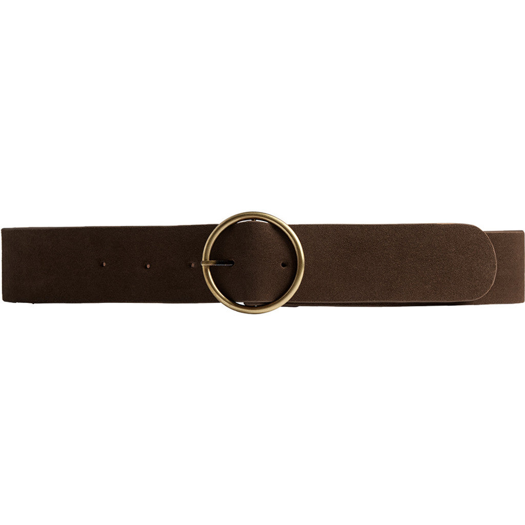 Dette ruskindsbælte er en smuk tilføjelse til enhver garderobe. Det brede design på 5 cm kombineret med den runde spænde skaber et elegant og feminint udtryk, der gør bæltet ideelt til at give form og stil til alt fra kjoler og tunikaer til blazere og strik.