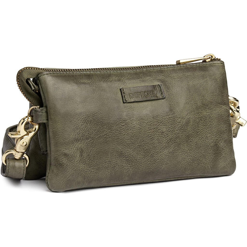 Lille skindtaske med guldfarvede detaljer / 11998 - Army Green