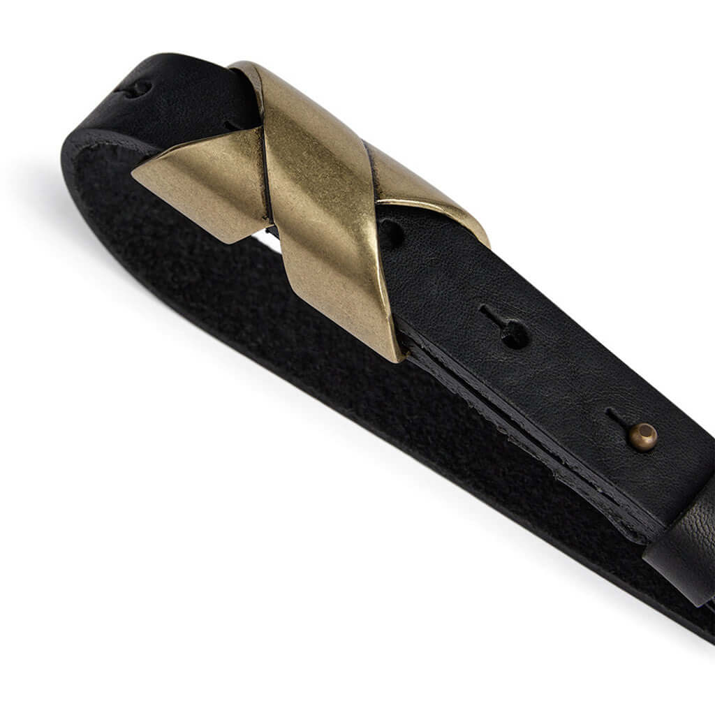 Forfin dit look med dette klassiske skindbælte, fremstillet i 100% kvalitetsskind. Bæltet har et elegant krydset spænde, der tilføjer et sofistikeret og unikt præg til det enkle design. Med sin smalle bredde på 1,8 cm er det ideelt til både hverdagsbrug og mere formelle anledninger, hvor du ønsker et subtilt og stilfuldt accessory.
