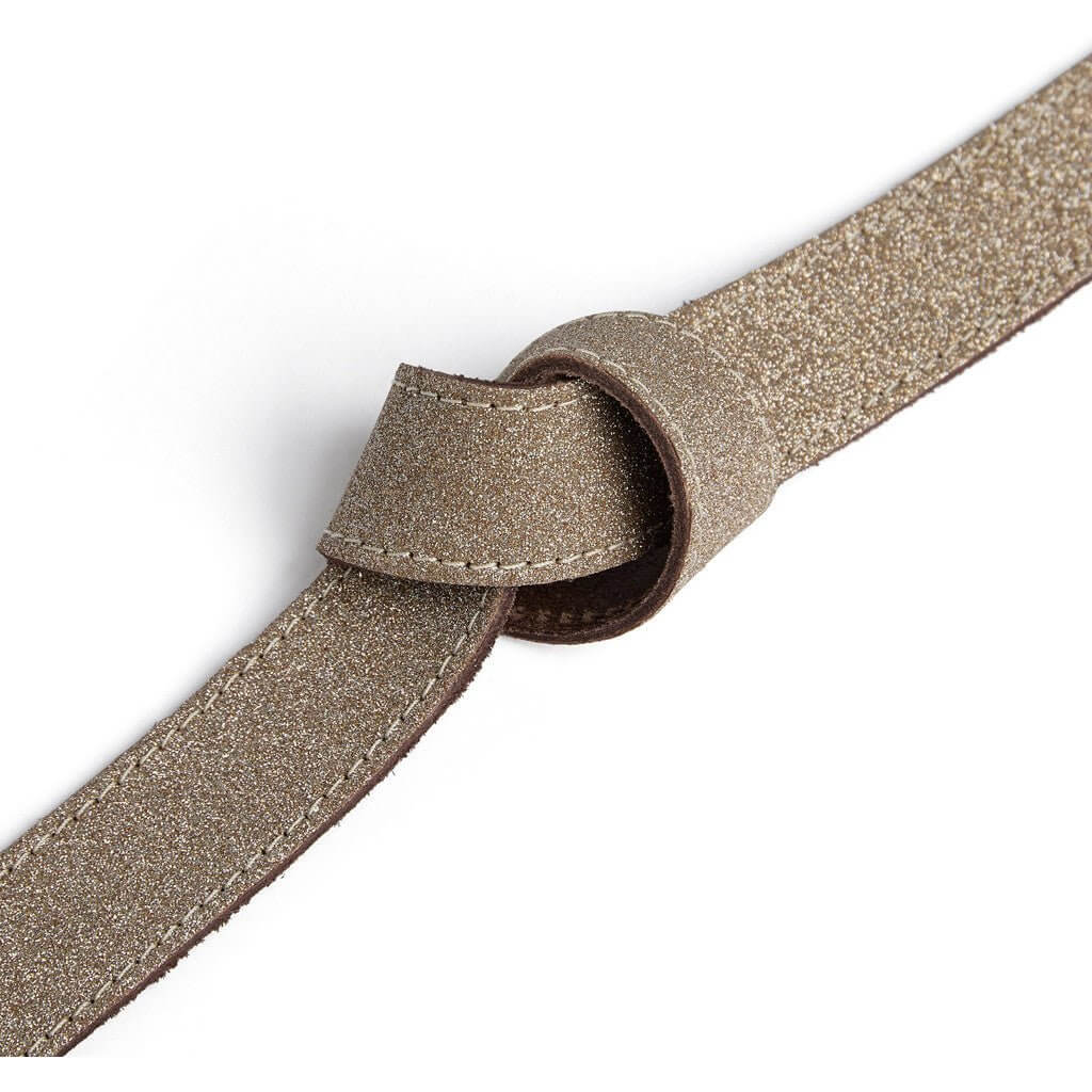 Designet er holdt stilrent med et mindre og diskret bæltespænde, som giver et sofistikeret finish og lader glittereffekten være i centrum. Med sin smalle bredde på 3 cm kan bæltet nemt styles i bæltestropperne på bukser, over en kjole eller som et elegant taljemarkør på en blazer.