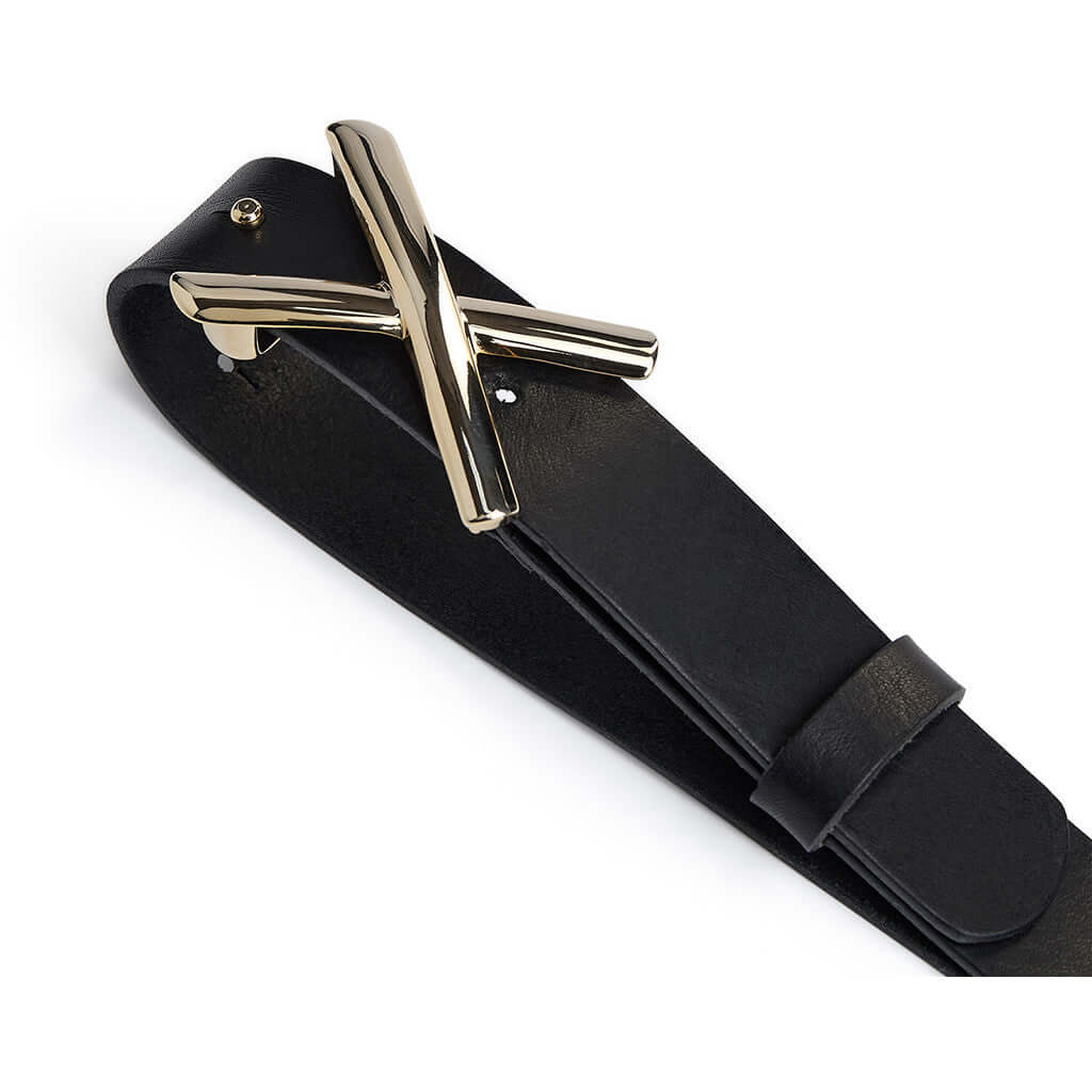 Jeansbælte med kryds-spænde / 17164 - Black/Gold