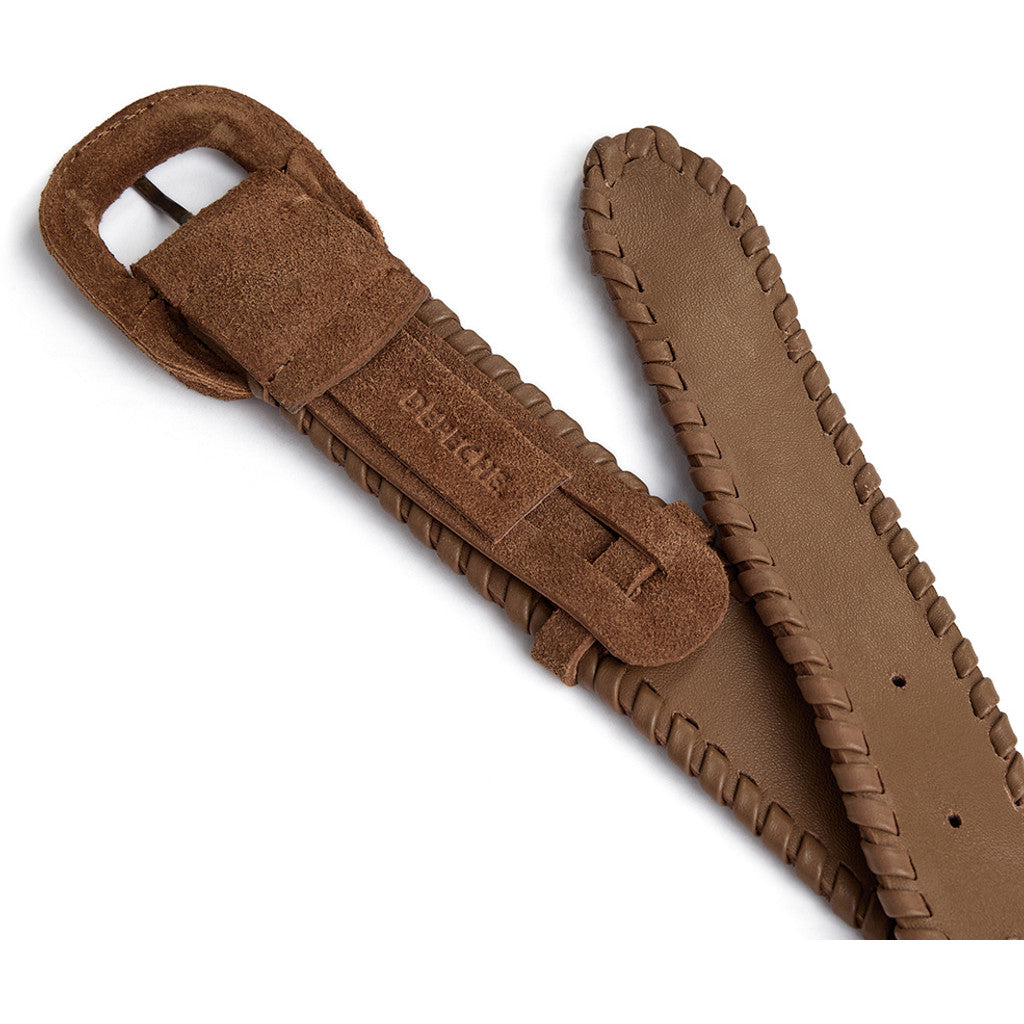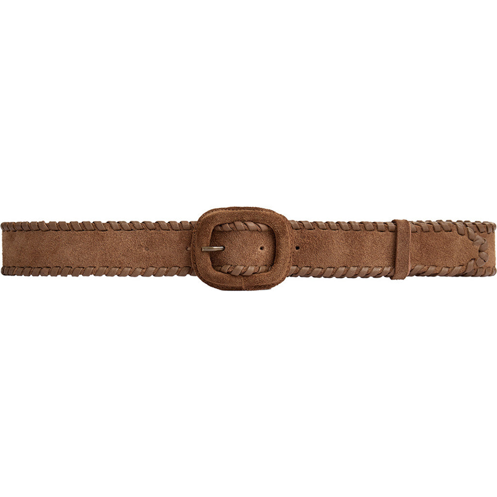 Bæltet er dekoreret med fine syninger langs kanten, som tilføjer struktur og et gennemtænkt, håndværkspræget look. Det ovale bæltespænde giver et elegant og tidløst twist, der gør bæltet både feminint og raffineret.