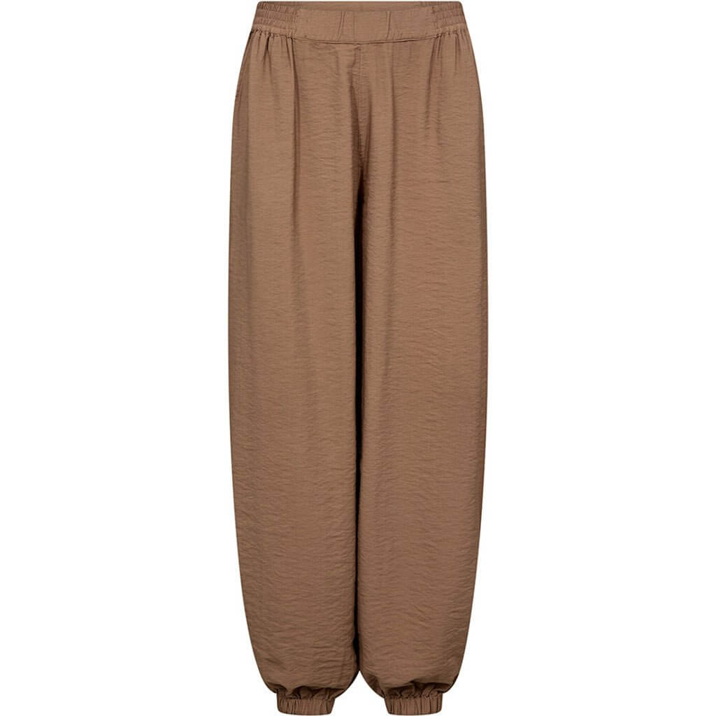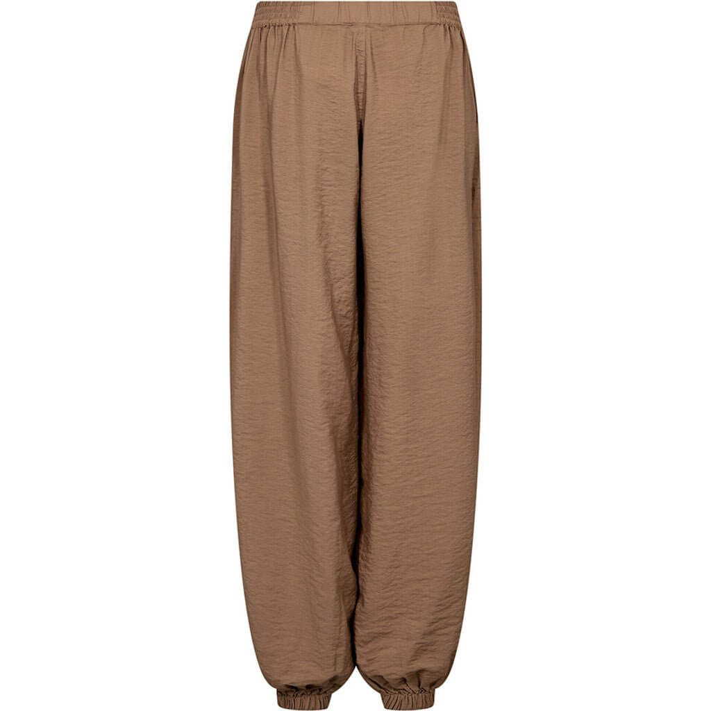 Bukserne har en regular waist og elastik i taljen, som giver en fleksibel pasform og høj komfort. Den fulde benlængde kombineret med elastik ved anklerne understreger balloon-effekten og giver bukserne et moderne og velafbalanceret look. De skrå sidelommer tilfører både funktionalitet og et afslappet touch, der gør bukserne nemme at style til hverdagsbrug.