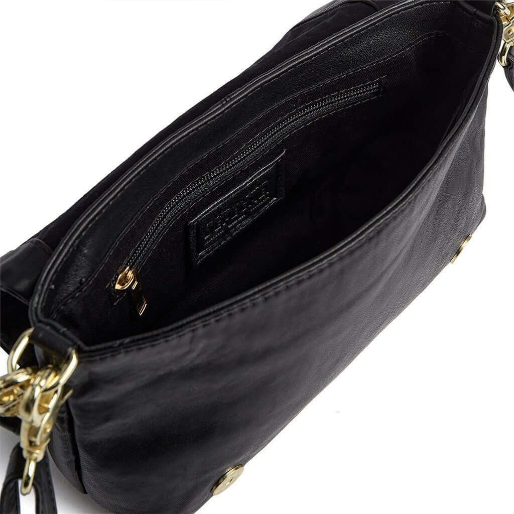 Tasken lukkes med en flap og en skjult magnetknap, som giver et rent og stilfuldt finish, mens indersiden rummer en lille lynlåslomme samt to åbne mobillommer, så du nemt kan holde styr på dine vigtigste ting. Powerfield kommer med både en lang aftagelig og justerbar crossbodyrem samt en kort aftagelig skulderrem, så du kan skifte look efter anledning - cool, casual eller mere dressed up.