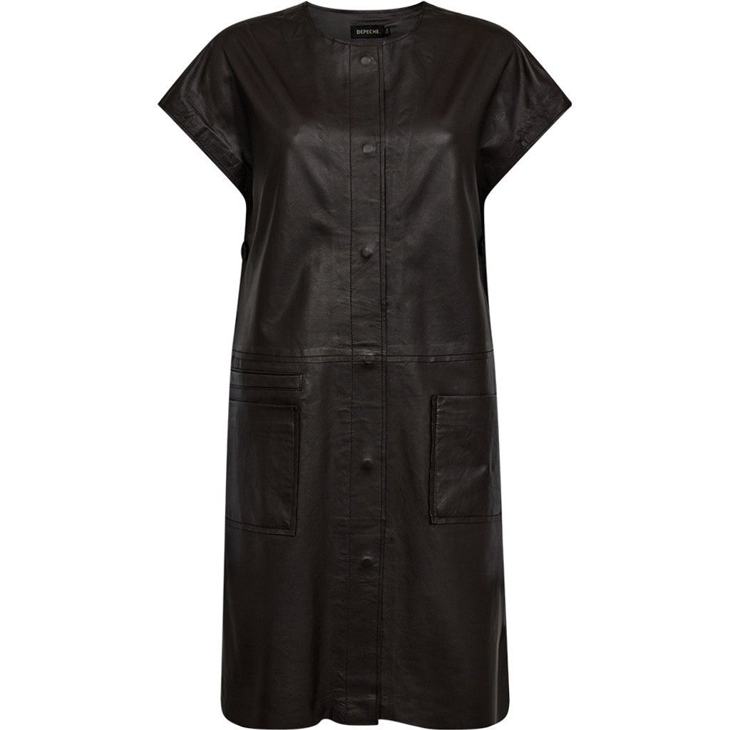 Tria er en smuk og trendy skindvest, der tilføjer et moderne touch til ethvert outfit. Vesten har en above knee længde og er designet med praktiske lommer på fronten, suppleret af en dekorativ lomme, der tilføjer et unikt udtryk. De korte wing sleeves giver et feminint og edgy look, mens slidserne i siderne med dekorative knapper sikrer både bevægelsesfrihed og stilfulde detaljer. Vesten lukkes med trykknapper, hvilket gør den nem at style og bruge. Tria er perfekt til lag-på-lag outfits og kan med fordel kombineres med en sweatshirt på de kølige dage for et casual og sofistikeret udtryk. En alsidig style, der er uundværlig i enhver garderobe.