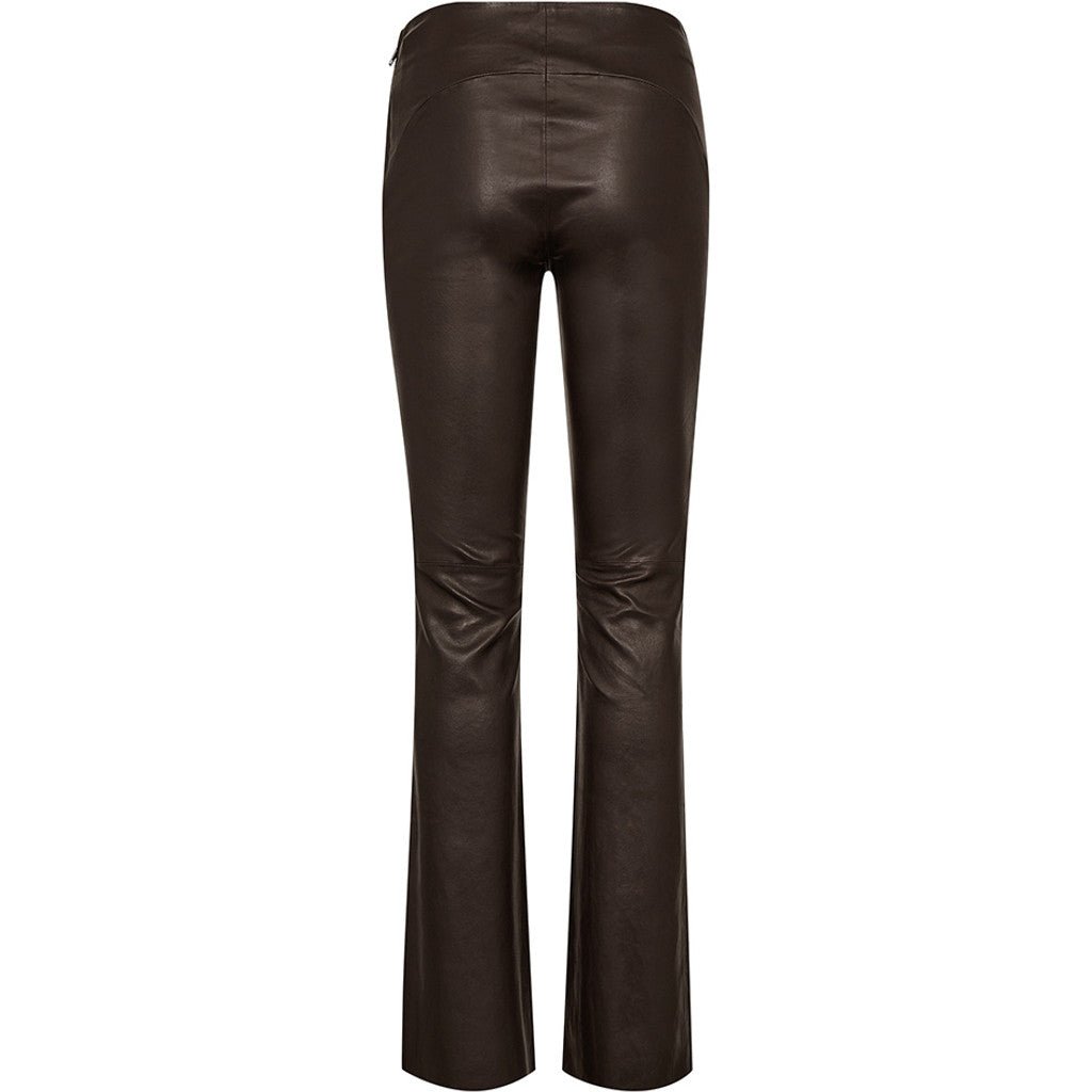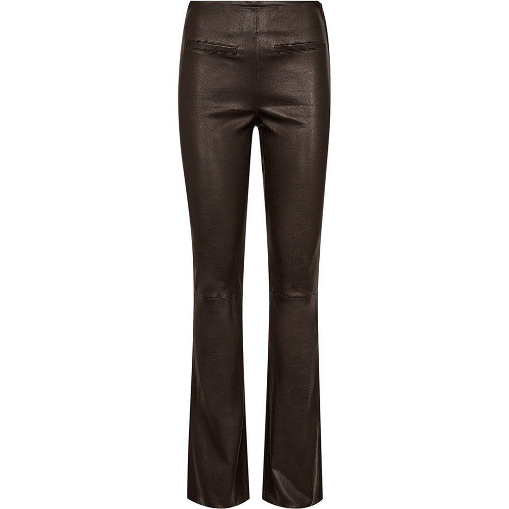 Ava er et par flared læderbukser i fuld længde, med stræk i en smørblød og lækker læderkvalitet. Disse bukser har et enkelt og elegant udtryk, der gør dem velegnede til både hverdagsbrug og festlige lejligheder. Deres regulære pasform med regular waist og flare leg skaber en flatterende silhuet, der passer til enhver kvinde. Ava er fremstillet af strækbart lammeskind, hvilket sikrer komfort og bevægelsesfrihed. Perfekt til at tilføje en luksuriøs touch til din garderobe.