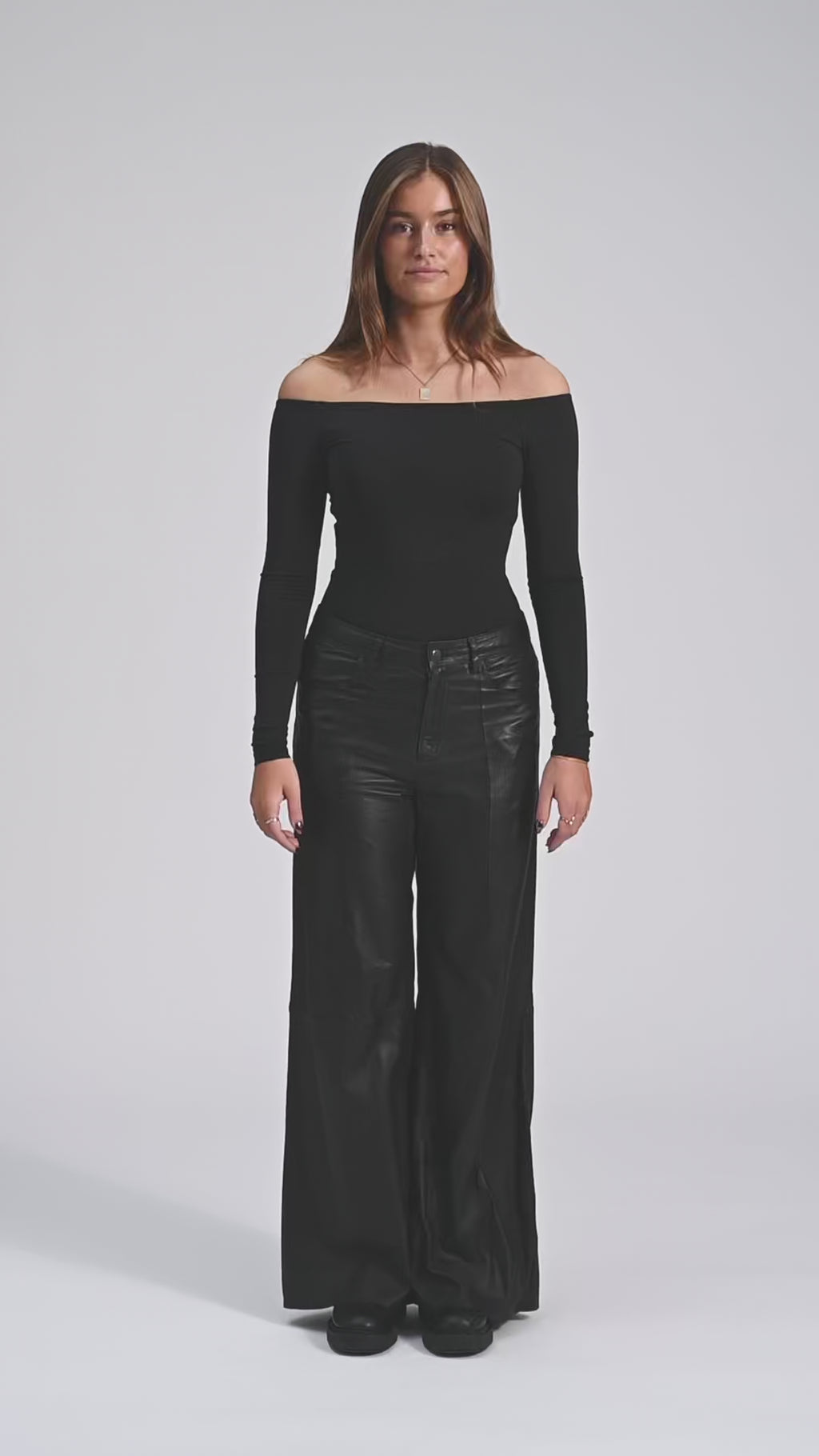 Boa Wide er et par højtaljede læderbukser i regular fit, fremstillet i blødt og slidstærkt læder af høj kvalitet. Disse bukser har et klassisk look med et moderne twist, der gør dem tidløse og alsidige til enhver anledning. Den høje talje og wide leg fitting skaber en smuk, flydende silhuet, der fremhæver og flatterer enhver figur. Bukserne kan styles på utallige måder, fra et afslappet look til et mere elegant outfit. De er udstyret med praktiske lommer både foran og bagpå og lukkes med en diskret kombination af knap og lynlås, som sikrer optimal komfort og pasform hele dagen. Boa Wide læderbukserne er en essentiel tilføjelse til enhver modebevidst garderobe, hvor kvalitet og stil er i fokus.
