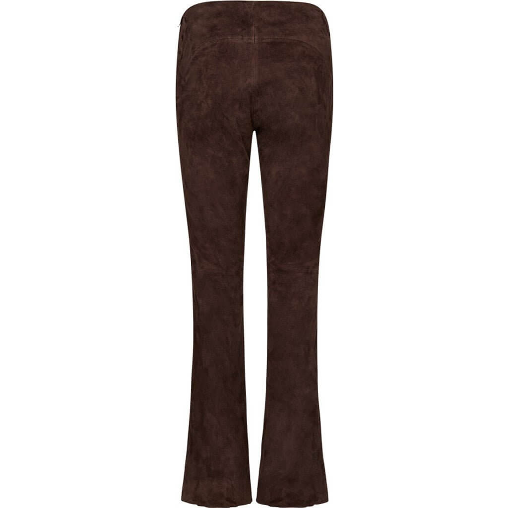 Ava er et par flared ruskindsbukser i fuld længde, fremstillet i blødt, strækbart ruskind af høj kvalitet. De har et enkelt og elegant udtryk, der gør dem til en oplagt style – uanset om du skal til hverdagens gøremål eller en mere festlig anledning. Den regulære pasform med regular waist og flared ben skaber en smigrende silhuet, der klæder alle kropstyper.