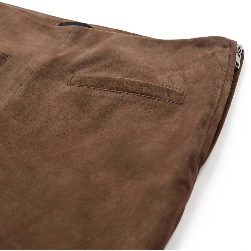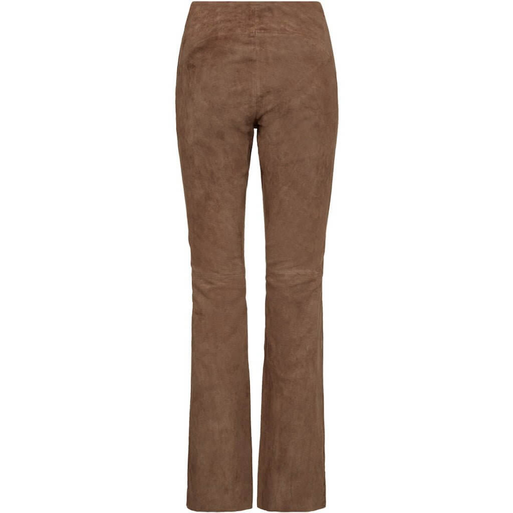 Det lækre ruskind med stræk følger kroppens bevægelser og giver både komfort og fleksibilitet hele dagen. Materialets struktur tilføjer dybde og eksklusivitet til looket, og gør bukserne nemme at style – både med en enkel skjorte, en blazer eller en løs strik. En vaskeægte garderobefavorit, der tilfører et touch af luksus til ethvert outfit.