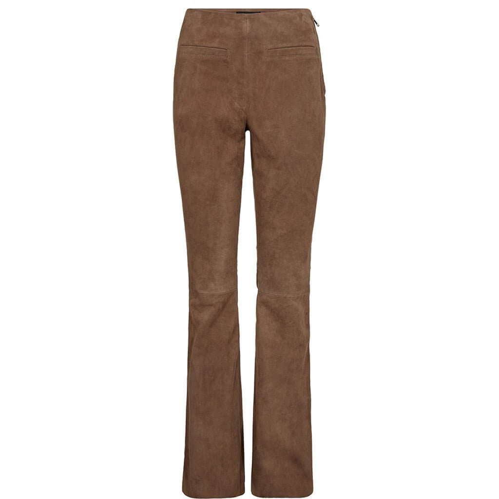 Ava er et par flared ruskindsbukser i fuld længde, fremstillet i blødt, strækbart ruskind af høj kvalitet. De har et enkelt og elegant udtryk, der gør dem til en oplagt style – uanset om du skal til hverdagens gøremål eller en mere festlig anledning. Den regulære pasform med regular waist og flared ben skaber en smigrende silhuet, der klæder alle kropstyper.