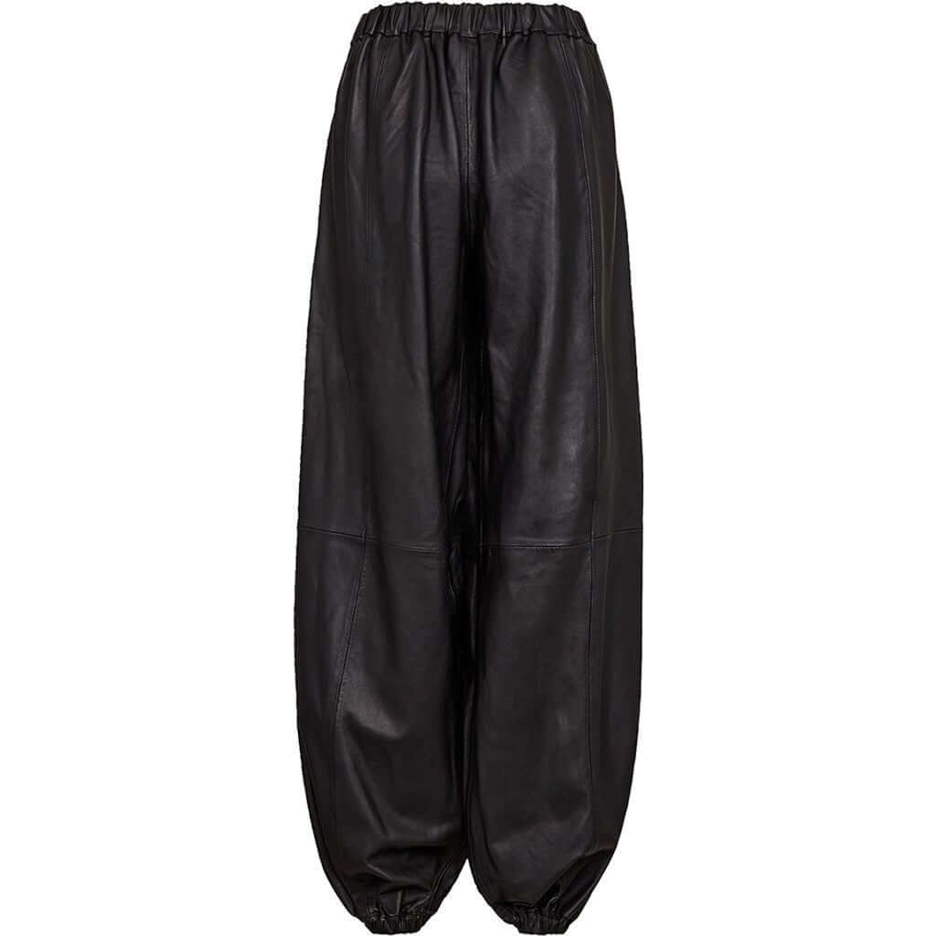 Ella ballon bukserne i lammeskind er en trendy og luksuriøs fortolkning af efterårets must-have. Fremstillet i den blødeste lammeskindskvalitet får bukserne et eksklusivt udtryk, der samtidig er behageligt at have på. Den løse pasform og voluminøse benvidde giver bukserne deres karakteristiske ballon-look, som er både moderne og afslappet, men stadig elegant.