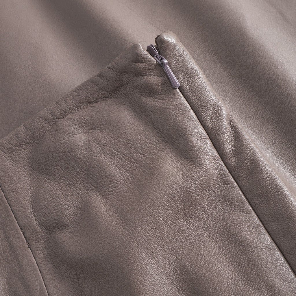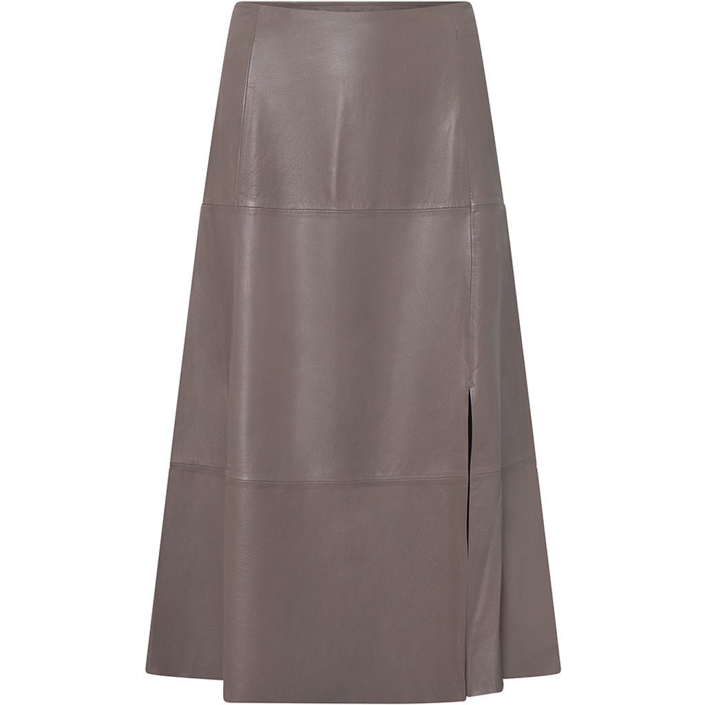 Elvira nederdelen er skabt i det fineste bløde og slidstærke lammeskind, hvilket gør den til en både luksuriøs og holdbar tilføjelse til garderoben. Nederdelen har en klassisk A-form og en elegant længde, der når til under knæet, hvilket skaber et sofistikeret og tidløst look. Den feminine slids i siden tilføjer et moderne touch, mens de rå kanter i bunden giver et hint af kant og attitude. Med en diskret lynlåslukning i siden er pasformen både praktisk og flatterende. Elvira nederdelen er perfekt til både hverdagsbrug og festlige anledninger og kan styles med alt fra en enkel bluse til en chunky strik.