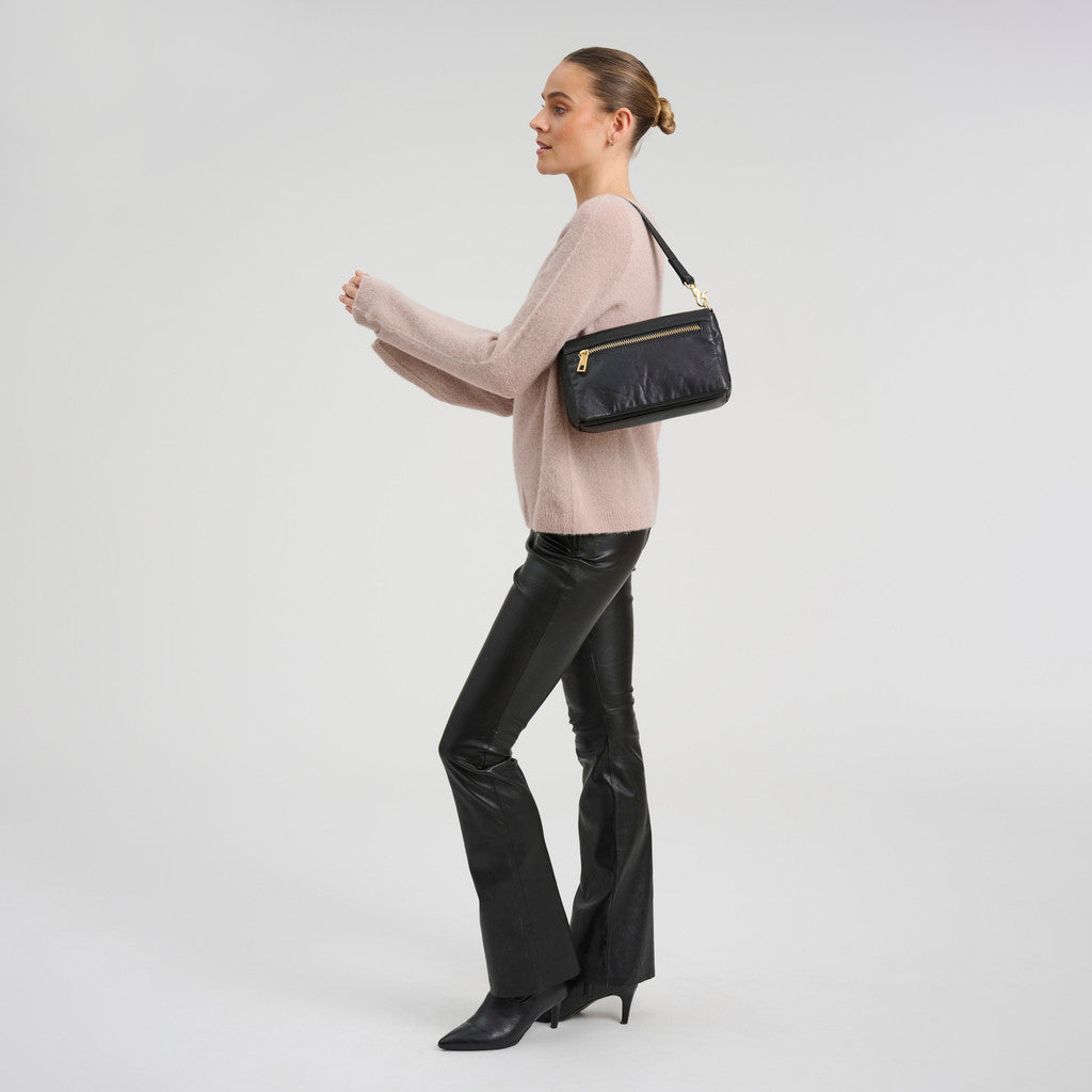 - Lang aftagelig og justerbar crossbodyrem + kort aftagelig skulderrem medfølger