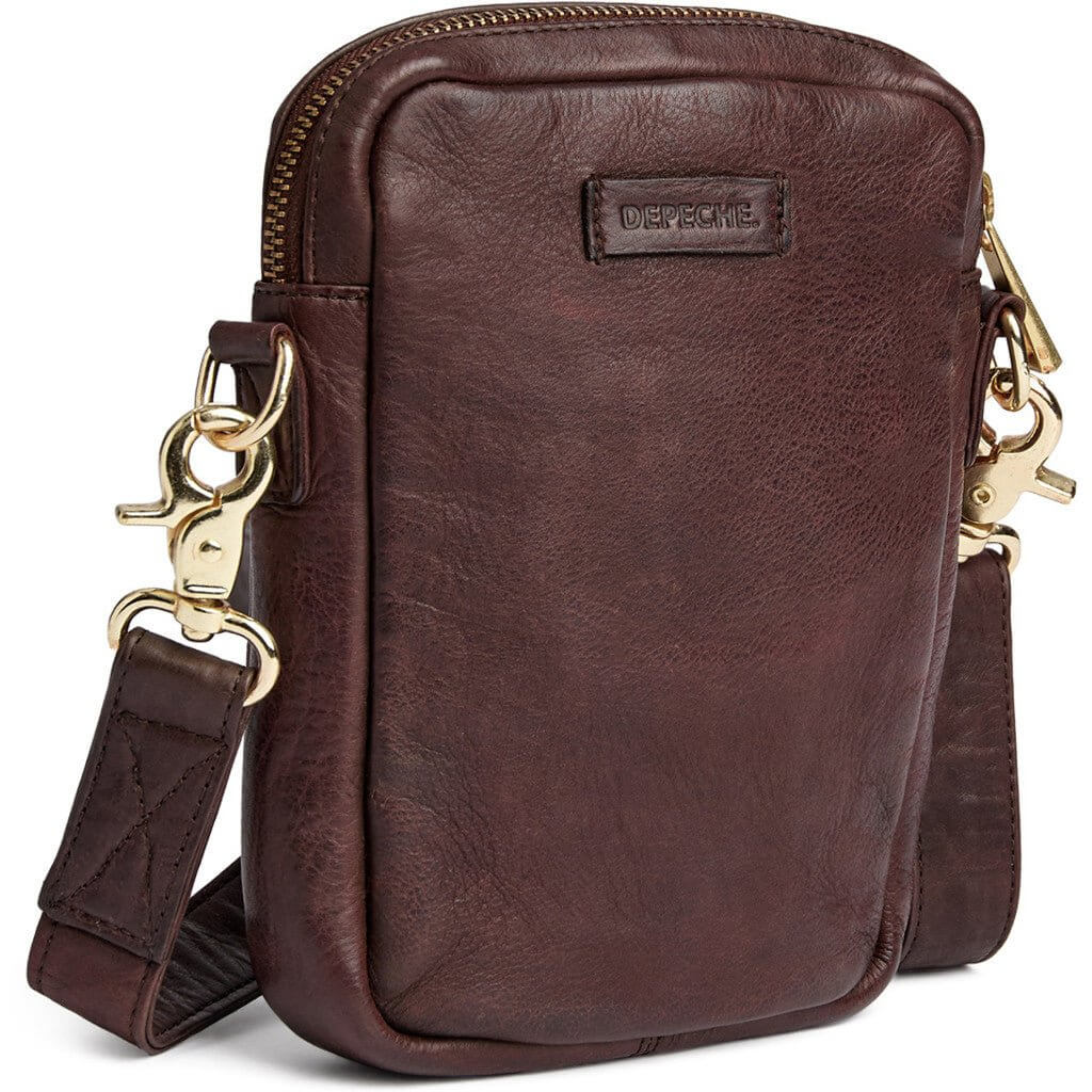 Klassisk mobiltaske i en smørblød skindkvalitet / 15700 - Coffee