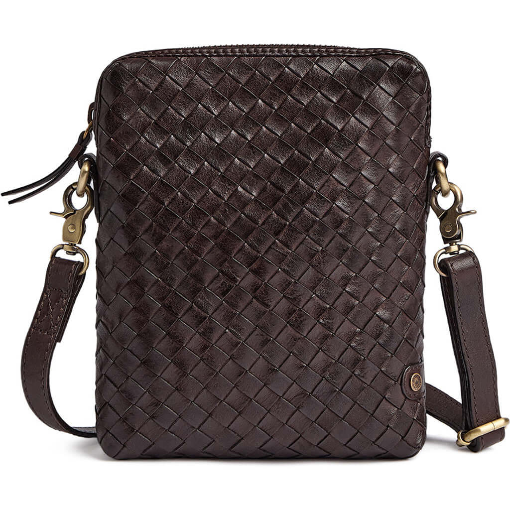 Håndflettet mobiltaske i kalveskind / 17096 - Dark brown