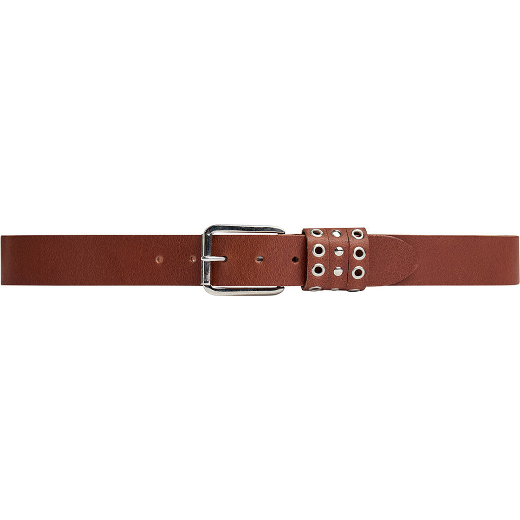 Dette jeansbælte er et cool og moderne take på det klassiske skindbælte. Fremstillet i 100% skind har bæltet en rå og struktureret overflade, der giver et let vintage look og tilfører outfittet ekstra kant. Detaljegraden er i top: Bælteloopsene er dekoreret med eyelets og små nitter, som giver bæltet et edgy og stilsikkert udtryk, uden at det mister sin alsidighed.