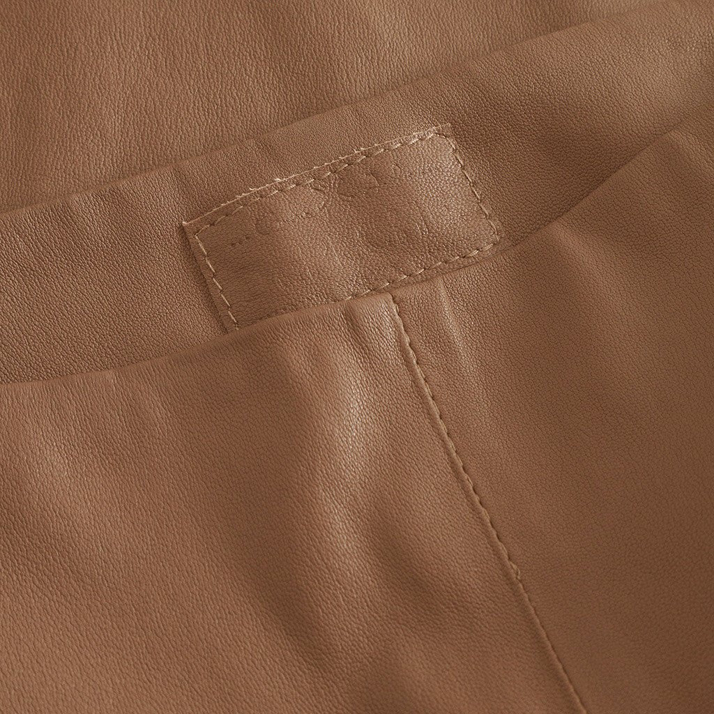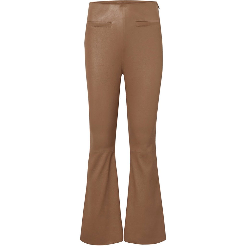 Ava er et par flared læderbukser i fuld længde, med stræk i en smørblød og lækker læderkvalitet. Disse bukser har et enkelt og elegant udtryk, der gør dem velegnede til både hverdagsbrug og festlige lejligheder. Deres regulære pasform med regular waist og flare leg skaber en flatterende silhuet, der passer til enhver kvinde. Ava er fremstillet af strækbart lammeskind, hvilket sikrer komfort og bevægelsesfrihed. Perfekt til at tilføje en luksuriøs touch til din garderobe.