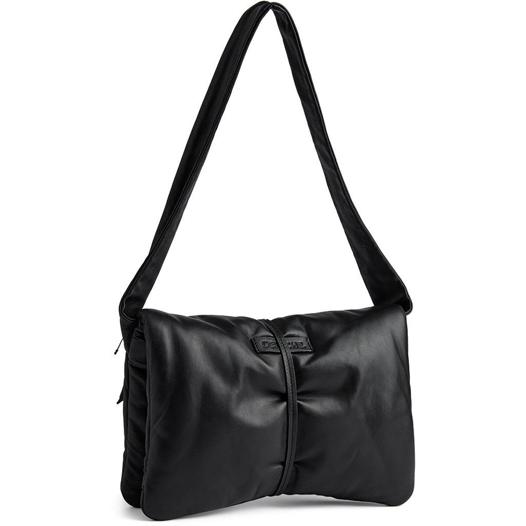 Denne skuldertaske er det perfekte miks af blød luksus og elegant design. Den smukke pillow-effekt giver tasken et voluminøst, men stadig let udtryk, der emmer af eksklusivitet og feminin stil. Tasken bæres over skulderen med en fast rem, som fuldender det klassiske og gennemførte look.