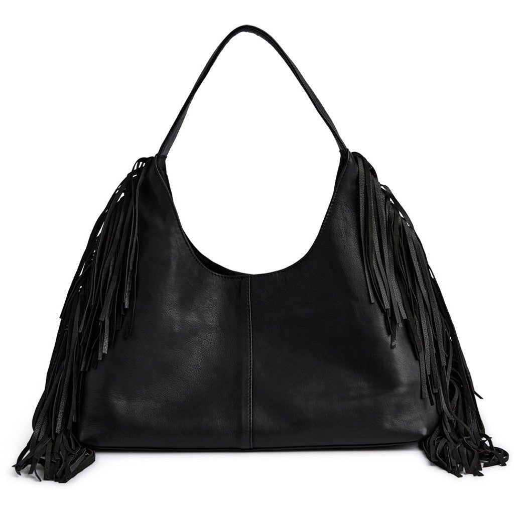 Denne smukke skuldertaske i læder er et stilfuldt statement piece. Tasken er lavet i glat, eksklusivt skind og har en elegant og poleret overflade, der tilfører dit look et strejf af underspillet luksus. Med sit karakteristiske frynsedesign på begge sider får tasken et moderne og iøjnefaldende twist, der bringer liv og personlighed til dit outfit. Frynserne i læder bevæger sig elegant, når du går, og tilfører både kant og karakter.