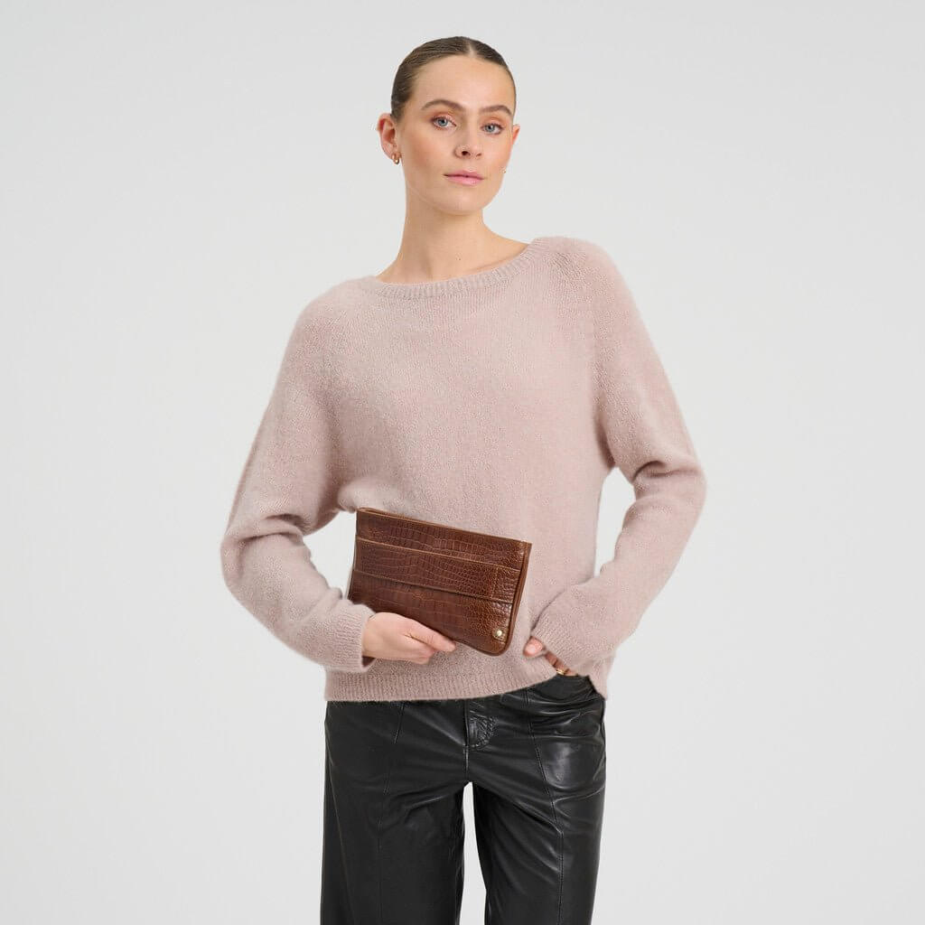 Fashion Favourites Croco clutchen er et elegant og stilrent accessory, der kombinerer klassisk design med eksklusive detaljer. Tasken er fremstillet i 100% skind og dekoreret med smuk croco-prægning, som giver et luksuriøst og sofistikeret udtryk. Det dekorative skindbånd langs fronten tilfører et ekstra raffineret touch og understreger clutchens feminine og eksklusive look.